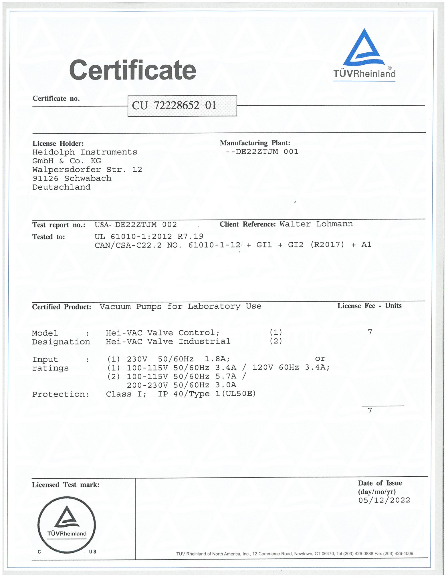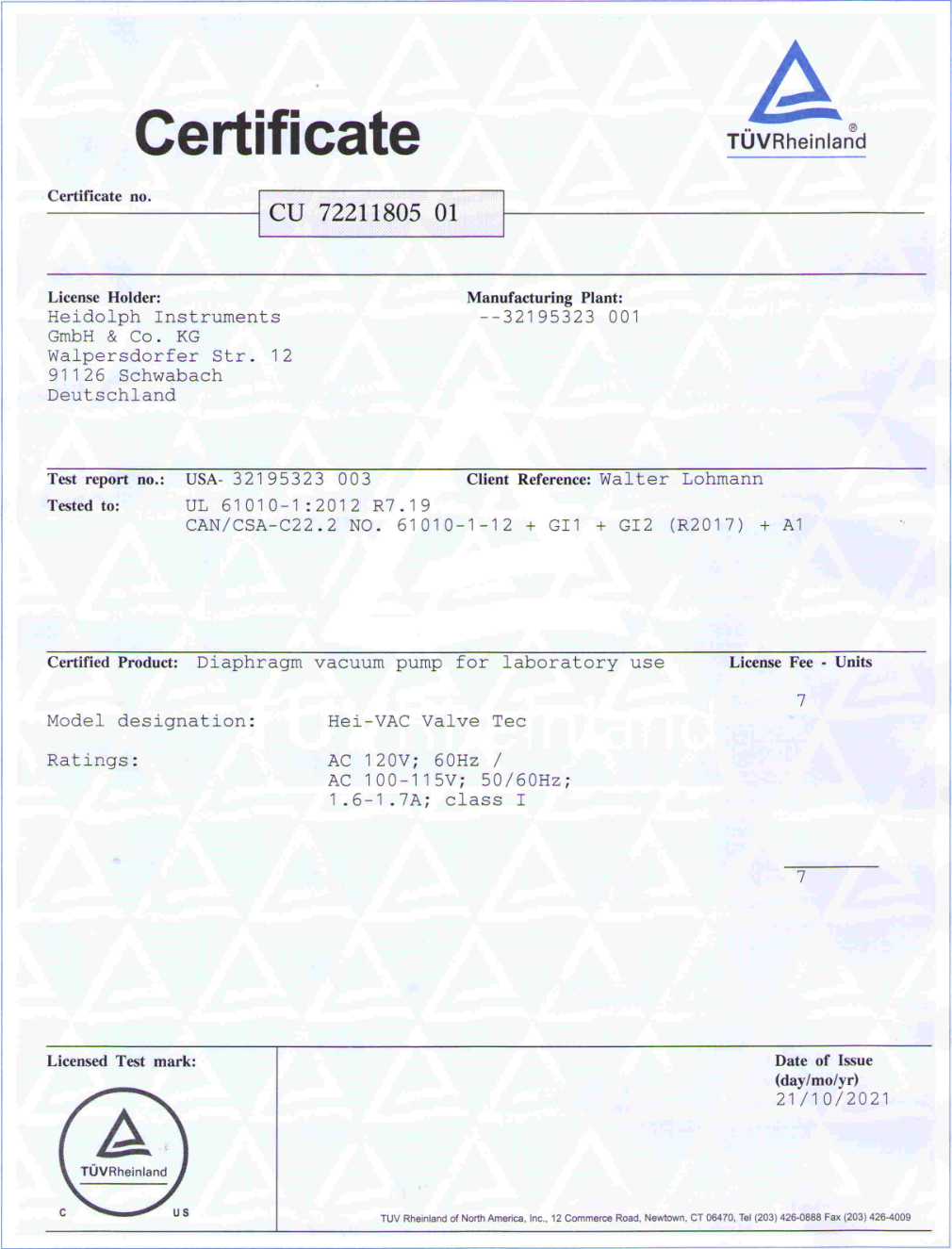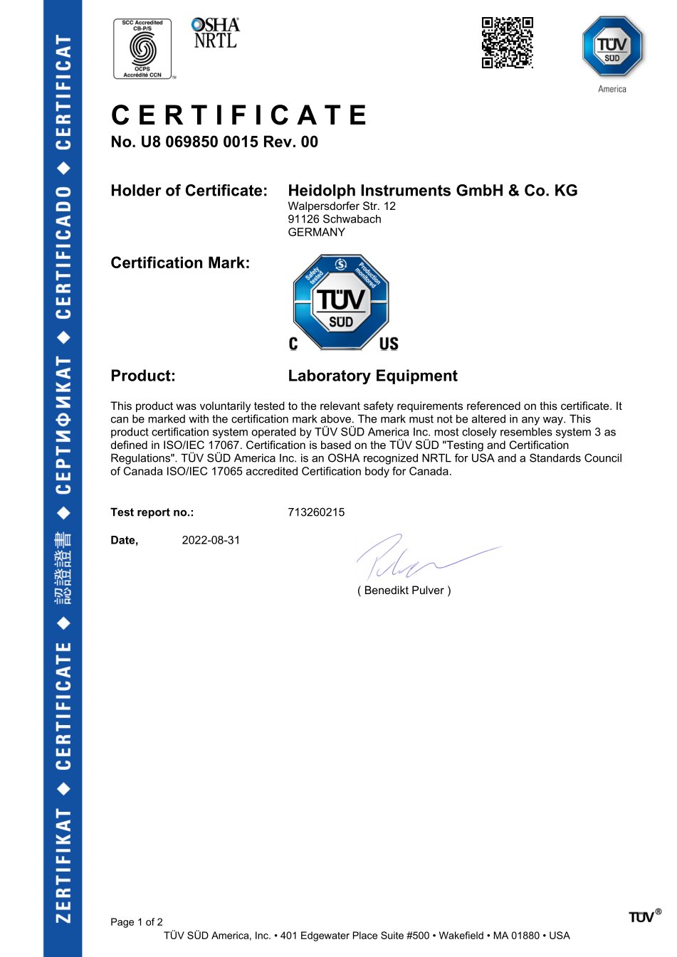 AMS Certificate for Safety Standards